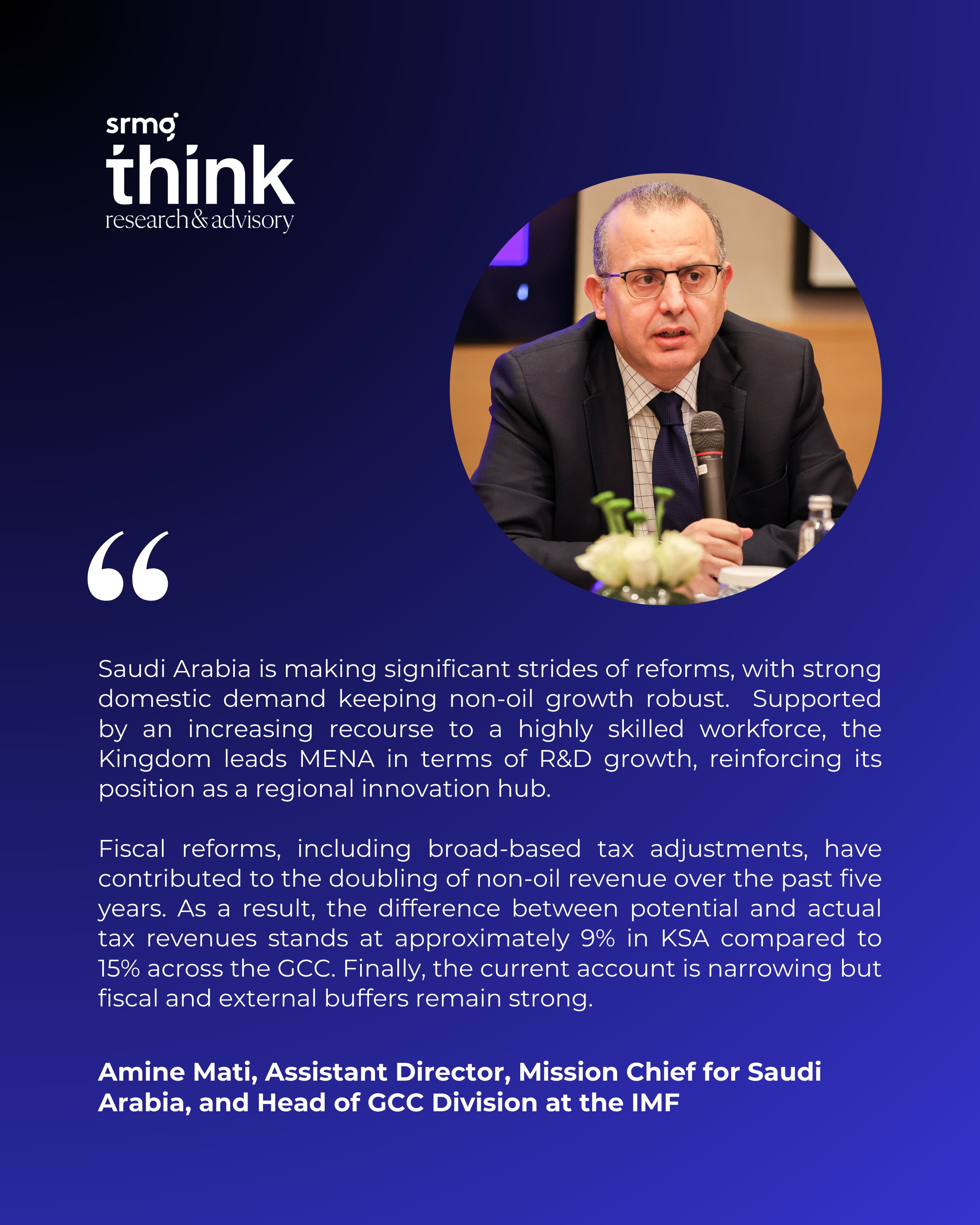 Key speakers were Amine Mati, Assistant Director, Mission Chief for Saudi Arabia, and Head of GCC Division, IMF and Balazs Csonto, Deputy Director, Riyadh Regional Office, IMF.